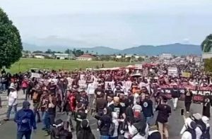 Diketahui, ribuan masyarakat dan mahasiswa, sejak siang, menggelar aksi unjuk rasa besar-besaran di seluruh jalan Trans Sulawesi di Luwu Raya.