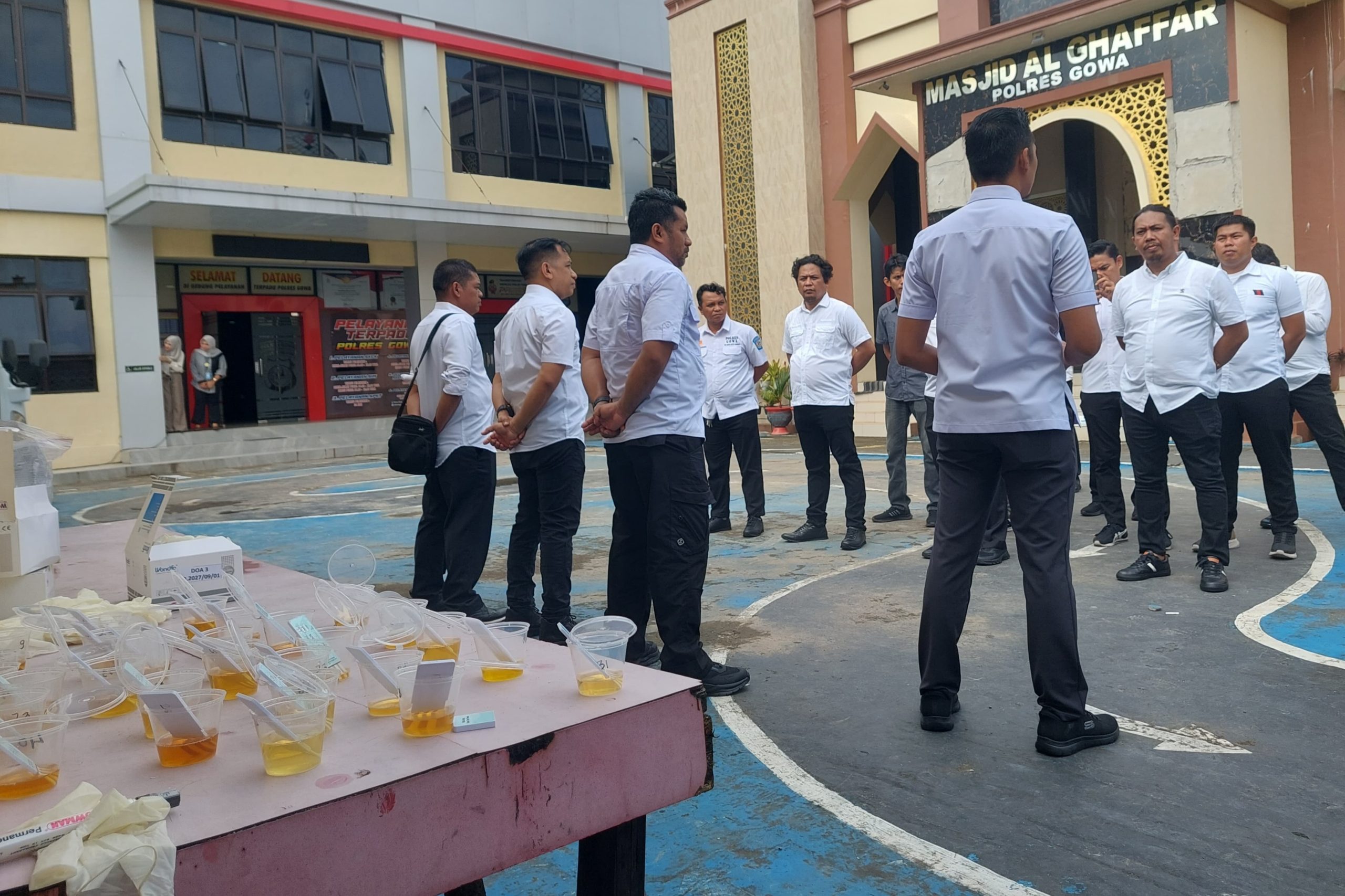 Tes urine tersebut, dilaksanakan secara menyeluruh terhadap personel Satresnarkoba Polres Gowa dan diawasi langsung oleh pejabat terkait.