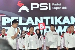MAKASSAR, UPOS – Ketua Umum Partai Solidaritas Indonesia (PSI), Kaesang Pangarep, melantik jajaran pengurus DPW PSI Sulawesi Selatan (Sulsel) dan 24 DPD kabupaten/kota se-Sulsel.