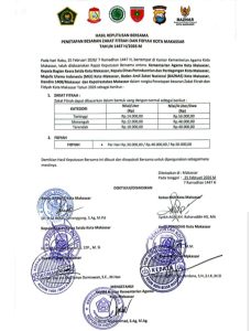 Penetapan tersebut dilakukan sebagai pedoman bagi masyarakat dalam menunaikan kewajiban zakat fitrah selama bulan suci Ramadan, sekaligus memberikan kepastian nilai pembayaran zakat dan fidyah yang berlaku di Kota Makassar.